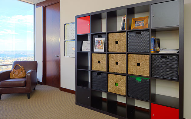 Shalissa's office includes a comfortable sitting space, perfect for small meetings and discussions.
