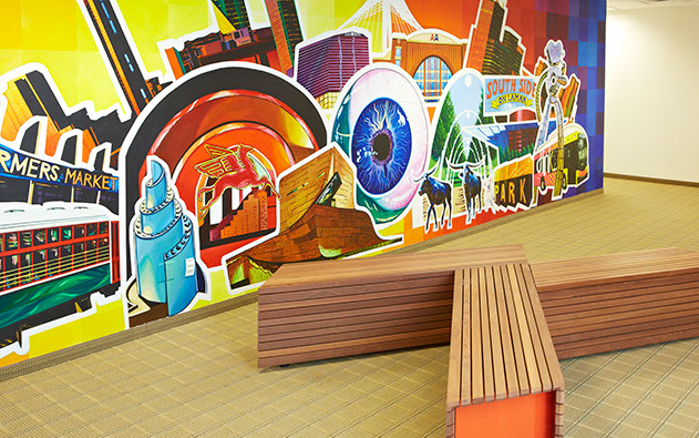 Downtown Dallas Inc. is located in the penthouse of the Bank of America building and has this amazing mural in it's common space.